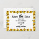 Los brillantes girasoles enmarcan un elegante guión en este semiformal Save the Date para extravagantes y sofisticadas celebraciones del amor.
