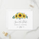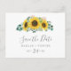 Esta rústica girasol horizontal, salvo la postal de fecha, es perfecta para una boda campestre. El diseño floral bohemio incluye girasoles amarillos, flores rosas y un eucalipto verde cazador en la acuarela con un elegante y moderno toque boho.