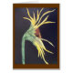 Girasol que alcanza hacia fuera. Sombras de amarillo, de marrón, y el verde en el fondo negro, enmarcado con marrón. Puede también ser enmarcado.
