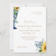 Hermosa Invitación a la boda floral toscana con girasol. La parte de atrás del Mediterráneo. No hay padres en la lista. Junto con...... Texto dorado. Bella fuente.