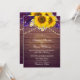 Esta invitación de boda rústica de granero campestre floral de girasoles amarillos y púrpuras es perfecta para su día especial. El diseño presenta un ramo floral de girasoles, lavanda, margaritas e iris rodeados de luces de cuerda sobre un fondo de madera de granero rústico. Fuentes elegantes y delicadas adornan la invitación. Este tema de diseño es perfecto para su boda de jardín, rústica, elegante, vintage, campestre o de destino. Vea la colección completa en nuestra página para encontrar artículos que satisfagan todas las necesidades de su suite de boda.