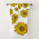 La toalla de baño de girasoles amarillos dispersos es perfecta para la decoración o para los amantes de las flores, los jardineros o la floristería. Esta toalla de baño, toalla de mano y tela de lavado presentan flores de girasol amarillas con un fondo blanco.