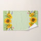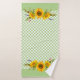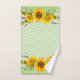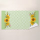 Este diseño rural/casa de campo tiene hermosas ramas de girasol acuáticas sobre un fondo de ajedrez verde pastel.