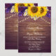 Esta invitación de boda rústica de granero campestre floral de girasoles amarillos y morados es perfecta para tu día especial. El diseño presenta un ramo floral de girasoles, lavanda, margaritas y lirios rodeados de luces de cuerda sobre un fondo de madera de granero rústico. Fuentes elegantes y delicadas adornan la invitación. Este tema de diseño es perfecto para tu boda de jardín, rústica, elegante, vintage, campestre o de destino. Ver la colección completa en nuestra página para artículos que cumplan con todas las necesidades de tu suite de boda.
