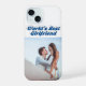 Estuche de teléfono con la mejor novia del mundo en texto azul marino 3D. Personalizar con tu propia foto. Disponible para varios estilos de teléfono.