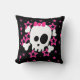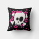 Personalizado lindo de un cráneo blanco con arco rosa rodeado de muchas estrellas rosas de diferentes tamaños y formas sobre fondo negro.