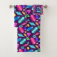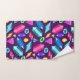 El cuarto de baño deslumbra como una joya con estas toallas de baño de colores. Las preciosas toallas de baño con motivos de piedras preciosas tienen un color de fondo morado oscuro y unos preciosos tonos de joyas.