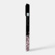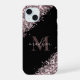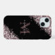 Moderno estilo glam rosa purpurina oro y rosa de oro texto en negro nombre de monograma guión iphone 14 funda. Personalice esto agregando su nombre e Inicial. El tipo de letra y el color también se pueden cambiar mediante la herramienta de personalización. Perfecto para una muchacha que quiere un estuche de teléfono único y destacado.