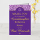 Esta elegante y real tarjeta de felicitación Bat Mitzvah de Relieve metalizado de oro en morado está lista para que la personalizes para ese chica especial en tu vida. La parte superior de la tarjeta es una banda de purpurina falso morado con un motivo de arco tallado y rodeado de Relieve metalizado dorado. El resto de la parte delantera es una morada real oscura con una estrella de David falsa color púrpura enclavada dentro del detalle del arco y seis plantillas de texto en una mezcla de fuentes, todo personalizable y todo impreso en Relieve metalizado oro real. La nieta puede ser cambiada a Hija o Niña o Primo o Hermana o Hija Paso, etc. según sea necesario. Añadir el nombre del chica especial es fácil e incluso puedes cambiar MAZEL TOV a CONGRATS y Bat Mitzvah a Cumpleaños para crear la tarjeta perfecta para tu ocasión. En el interior de la tarjeta hay un fondo de morado de lavanda pastel pálido con un borde de brillo falso y una plantilla de texto en morado oscuro donde puedes añadir tu propio mensaje especial. Esta tarjeta morada de felicitaciones Bat Mitzvah con Relieve metalizado de oro real es una hermosa manera de expresar tus buenos deseos en el día especial del chica Bat Mitzvah.
