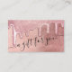 Esta glamurosa tarjeta de presentación de regalo es perfecta para una mujer de negocios profesional y de moda. Presenta un purpurina fino impreso en rosa brillante y grueso goteo sobre un fondo de Relieve metalizado de oro rosa. La tipografía es un guión cursivo elegante con un tipo de letra serif moderno para coincidir. Es moda, bonito, única y lujosa; la manera perfecta de promocionar su negocio y estilizar su material de marketing y publicidad para sus clientes. ***NOTA IMPORTANTE DE DISEÑO: Para cualquier solicitud de diseño personalizado como solicitudes de productos coincidentes, cambios de color, cambios de posición o cualquier otra solicitud de cambio, haga clic en el botón "mensaje" o envíe un correo electrónico al diseñador directamente a lafemme.art@gmail.com. Incluso puede enviarle un correo electrónico solicitando un diseño completamente personalizado y nuevo.