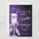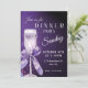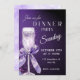 Cena glamurosa y elegante con un fondo de purpurina violeta brillante y un bonito diseño de champán. Es una manera perfecta y divertida de invitar a los invitados a su evento.