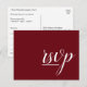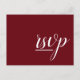 Este glamoroso y elegante diseño de postal RSVP presenta el mensaje "rsvp" en la parte delantera. También incluye un formulario RSVP personalizado en la parte posterior para que el destinatario lo complete, junto con una dirección personalizada a la que se enviarán por correo las tarjetas RSVP completadas. Las tarjetas RSVP como esta podrían ser usadas para averiguar quién asistirá a una ducha de bebé, una fiesta de graduación, una ducha de boda o algún otro evento.