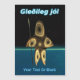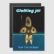 Imagen fractal de tono marrón que sugiere a un cazador inuit altamente estilizado, usando ropa de piel tradicional, sosteniendo un arpón con la cabeza de marfil. La imagen es superpuesta en un fondo que representa el oscuro invierno polar. El texto islandés que dice "Gleðileg jól" (Feliz Navidad) aparece en azul brillante y blanco.