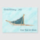 Un perro enrollado con una bolsa de trineo verde azulada superpuesta sobre una imagen de fondo nevada. También aparece el texto islandés "Gleðileg Jól". Añade tu propio texto adicional en la parte inferior derecha y en el bolso.