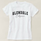 Que todos sepan que aman a The Glendale con esta camiseta blanca para mujeres. Este diseño es magnífico como regalo, recuerdo o para demostrar que estás orgulloso de ser de Glendale, California. Este diseño de camiseta presenta "Glendale" en una fuente tipo losa y "California" en un elegante estilo de letra manuscrito.