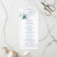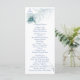 Un programa de bodas sencillamente elegante, con una pluma de pavo real en tonos azules y verdes que parecen purpurinas en un simple fondo blanco. La parte posterior repite el patrón con un área para insertar la foto. Personalizar fácilmente el texto a su elección.