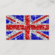 Volar la bandera del Reino Unido con este divertido diseño de Union Jack con estrellas dispersas sobre un estilizado fondo de patrón de "aspecto secuencial". Plantilla de tarjeta de visita con un diseño de personalizable rojo, blanco, gris plateado y azul para que pueda personalizar con su propio texto, imágenes e ideas. Tenga en cuenta que esta es una imagen de arte digital impresa. El producto no brilla ni contiene purpurinas o secuencias reales.