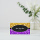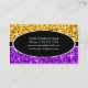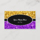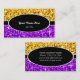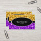 La plantilla de la tarjeta de visita con un diseño moderno que ofrecía las estrellas dispersadas sobre "un fondo estilizado de la mirada de la lentejuela" en sombras del oro amarillo y púrpura con un óvalo y una raya negros afiló con el texto blanco y blanco. El texto puede ser cambiado fácilmente usando la plantilla proporcionada o hacer clic el "personalizar él" botón para hacer otras alteraciones. Observe por favor esto es una imagen digital impresa del arte, no brilla ni contiene el purpurina o lentejuelas real.