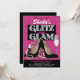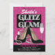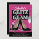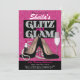 Este diseño brillante y glamuroso de cumpleaños incluye un par de zapatos altos negros, un fondo de purpurina rosa caliente, una copa de champán, una cuerda de perlas y un pintalabios. ¡Todo es glamuroso, brillante y glamuroso!