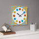 Diseño abstracto con un toque retro de mediados de siglo con esferas delineadas en negro y óvalos en azul brillante, amarillo dorado y naranja quemado sobre un fondo blanco. Un diseño de personalizable para que puedas personalizar con tu propio texto, imágenes e ideas. Imagen original de arte digital creada por Jess Perry en QuirkyChic Retro.