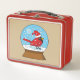 Un ilustracion de un globo de nieve con un tierno cardenal rojo usando una red santa claus bajo la nieve en un cielo azul brillante. Este bonito diseño de globo acuático para navidades personalizados es un regalo para los amantes de las vacaciones invernales y los amantes de las aves y los animales.