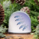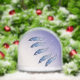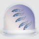 Las plumas azules. Cinco plumas azules (que varían de la oscuridad a la luz) flotan de arriba a abajo. El fondo es púrpura difuso de arriba/oscuro a abajo/luz.