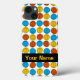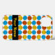 Diseño abstracto con un toque retro de mediados de siglo con esferas delineadas en negro y óvalos en azul brillante, amarillo dorado y naranja quemado sobre un fondo blanco. Un diseño de personalizable para que puedas personalizar con tu propio texto, imágenes e ideas. Imagen original de arte digital creada por Jess Perry en QuirkyChic Retro.