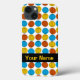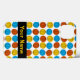 Diseño abstracto con un toque retro de mediados de siglo con esferas delineadas en negro y óvalos en azul brillante, amarillo dorado y naranja quemado sobre un fondo blanco. Un diseño de personalizable para que puedas personalizar con tu propio texto, imágenes e ideas. Imagen original de arte digital creada por Jess Perry en QuirkyChic Retro.