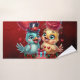 Globo cardíaco y magia Rosa: un romance pluvial, magia de valentinas. Una dulce pareja de pájaros personalizados, El pájaro azul, elegante y encantador, lleva un sombrero de tope decorado con una cinta en forma de corazón, un signo de su amor. Junto a él se encuentra el pájaro amarillo, una verdadera encarnación de la gracia y la belleza. Su plumaje brilla como el sol mismo, mientras ella está adornada con una rosa roja y un velo delicado que sopla en la suave brisa nocturna.