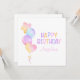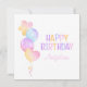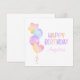 Tarjeta de felicitación de cumpleaños para niños con globos de agua coloridos y forma de corazón y estrella con el texto vibrante y colorido "Feliz Cumpleaños".