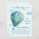 ¡Entra en un mundo de encanto con nuestra invitación exclusiva! Con un encantador globo de aire caliente azul y caprichoso, este diseño está rodeado de nubes azules. Preparado con amor.