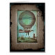 Obra futurista vintage del artista e ilustrador francés Albert Robida. Una imagen del siglo XIX muestra a un globo aerostático volando sobre barcos enchapados en el puerto.