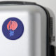 El globo de aire rojo-azul primitivo se dibuja con acuarelas y se coloca sobre un fondo azul medianoche. Es una impresión dulce para tu casa.