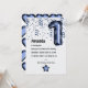 Invierno, globo temático con copo de nieve, invitación a fiesta de primer cumpleaños.