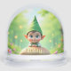 Cute elfo bebé y envía un mensaje a Snow Globe. Sólo se puede personalizar el texto en la parte delantera. Ideal para navidades, cumpleaños, fiesta, favor de la ducha para bebés y más.