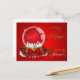 Ilustracion de un globo nevado de Navidades con un muñeco de nieve, árboles de Navidad y un cielo lleno de estrellas. Mira de cerca y puedes ver a Santa y a su trineo también. Envuelto con un arco de cinta roja. También tiene un texto festivo rojo Feliz Navidad en un fondo rojo festivo. Hermosos Navidades diseñan para sus tarjetas de felicitación de vacaciones.