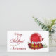 Ilustracion de un globo nevado de Navidades con un muñeco de nieve, árboles de Navidad y un cielo lleno de estrellas. Mira de cerca y puedes ver a Santa y a su trineo también. Envuelto con un arco de cinta roja. También tiene un texto festivo rojo Feliz Navidad en un fondo blanco de nieve limpio. Elegante tarjeta de saludo para sus vacaciones de Navidades.