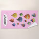 Una serie de globos de aire caliente están volando en esta toalla de baño rosa claro.