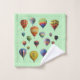 Una serie de globos de aire caliente están volando sobre este paño de lavado verde menta.