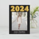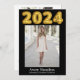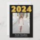 Esta tarjeta de anuncio de graduación de último año presenta las fotos de su graduado y se puede editar fácilmente. Puede personalizar y crear hermosas tarjetas de graduación para sus graduados con esta tarjeta de anuncio de ceremonia de graduación de 5 fotos. 2024 está escrito en fuente de globo dorado.
