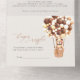 ¡Podemos esperar! Grabado de caligrafía moderno All In One con un tipo de letra serif clásico. Personalizable de cualquier color. Mantenga el diseño tal y como está, o lo personaliza agregando sus gráficos y ilustraciones. Simplemente escriba a mano las direcciones de los invitados en la parte posterior de la invitación doblada o compre los pegatinas de las etiquetas de direcciones de los invitados coordinadores (se venden por separado). Este oso pequeño espera al gran fiesta bebé, sentado en un globo de aire caliente construido con globos marrones y crema. Personalice esta bonita invitación de Bear Baby Shower con los detalles de su ducha de bebé de forma fácil y rápida, pulse el botón personalizar para reorganizar más y formatear el estilo y la ubicación del texto.