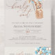 ¡Podemos esperar! Grabado de caligrafía moderno All In One con un tipo de letra serif clásico. Personalizable de cualquier color. Mantenga el diseño tal y como está, o lo personaliza agregando sus gráficos y ilustraciones. Simplemente escriba a mano las direcciones de los invitados en la parte posterior de la invitación doblada o compre los pegatinas de las etiquetas de direcciones de los invitados coordinadores (se venden por separado). Este oso pequeño espera al gran fiesta bebé, sentado en un globo de aire caliente construido con globos marrones y crema. Personalice esta bonita invitación de Bear Baby Shower con los detalles de su ducha de bebé de forma fácil y rápida, pulse el botón personalizar para reorganizar más y formatear el estilo y la ubicación del texto.