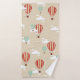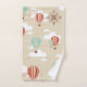 Toallas de baño temáticas del aire caliente del viajero adorable del globo. Ofrecen los globos rojos y azules del aire caliente, la línea de puntos linda nubes mullidas blancas, el fondo beige, y la acentuación del rosa de compás en la toalla de baño.