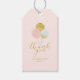 Añada estas etiquetas modernas y lindas de agradecimiento a los favores de tu partido. El diseño de esta etiqueta presenta globos elegantes y tipografía en color dorado y rosa. Perfecto para una moderna ducha o cumpleaños para un chica. En mi tienda BaraBomDesign hay disponibles invitaciones y suministros para fiestas coincidentes.