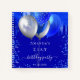 Un fondo de diseño de color azul real con pinturas que gotean, globos falsos de plata y azul. Personalice y agregue un nombre y una fecha. Se puede usar como un libro de fiestas, para planear al fiesta o como favores partidarios.