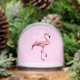 Aquí hay un globo de nieve rosa flamingo. Whimsical y lindo, este es un regalo divertido para todos.