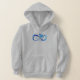 Luminous infinity symbol with glowing, beautiful, lushly blooming rose made of blue flames on black background.