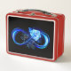 Luminous infinity symbol with glowing, beautiful, lushly blooming rose made of blue flames on black background.