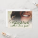 ¡Glücklich steht Dir gut! Kompliment Karte mit lachendem Frauengesicht und handschriftlichen Grüßen auf der Vorderseite der Karte. Restliche Flächen stehen zur freien Verfügung.