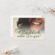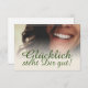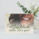 ¡Glücklich steht Dir gut! Kompliment Karte mit lachendem Frauengesicht und handschriftlichen Grüßen auf der Vorderseite der Karte. Restliche Flächen stehen zur freien Verfügung.